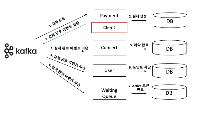 Kafka를 도입하여 결제 프로세스를 진행한다면 아마 이런식으로 진행 될 것이다.