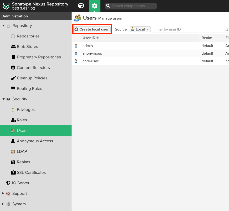 - Users > Create local user 클릭