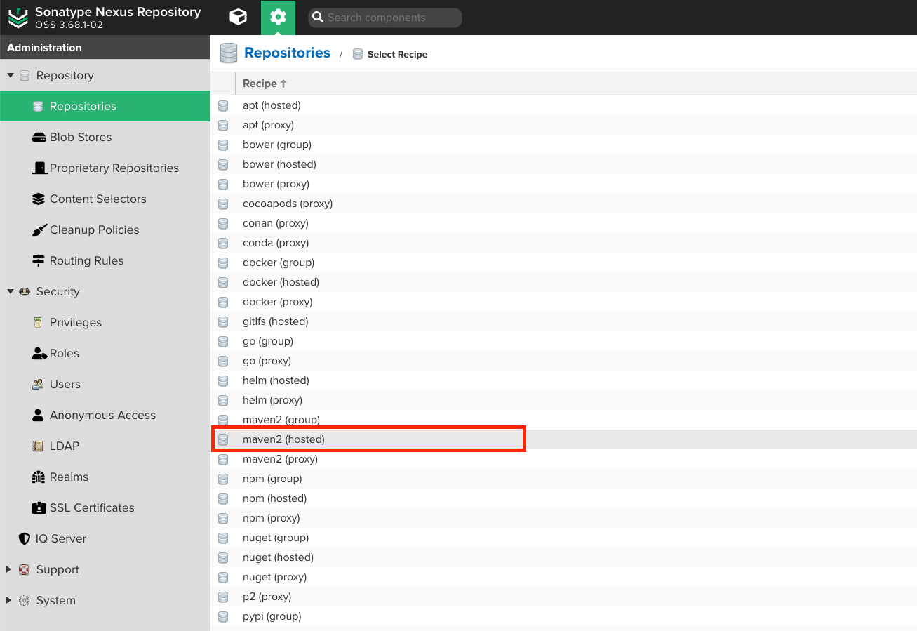 - maven2 (hosted) 클릭