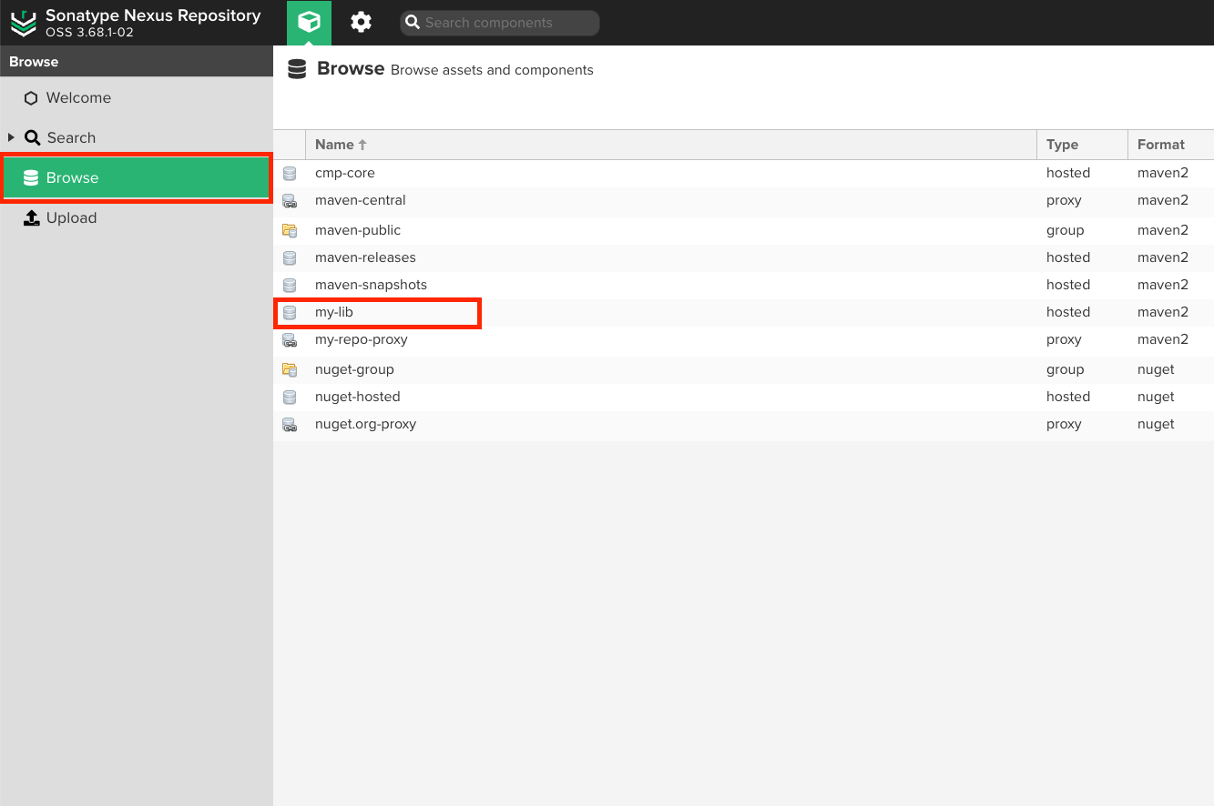 nexus에서 라이브러리가 잘 업로드 됐는지 확인해주면 된다.
