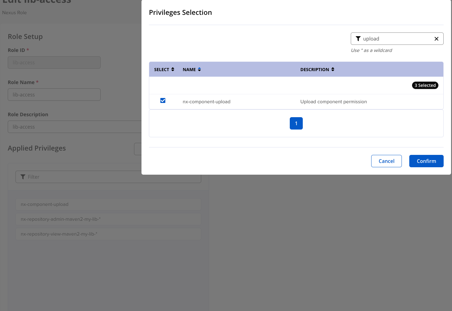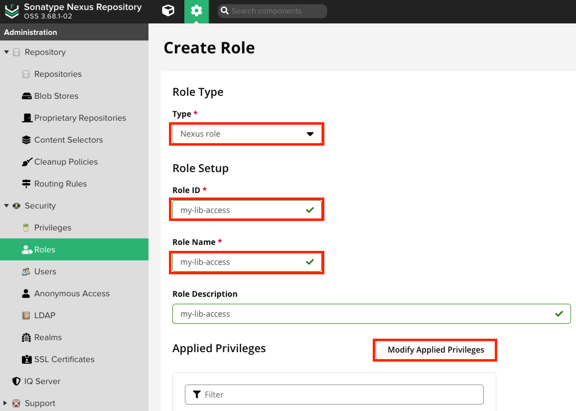 - 아까 만든 repository 명으로 검색, nx-repository-xx-my-lib-* 처럼 아까만든 레포지터리로 된 권한 다 주고,