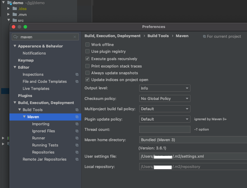 nexus 레파지토리에 접근하기 위해서는 우선, maven 설정 파일인 settings.xml을 수정해야야 한다. 기본적으로는 ~/.m2/settings.xml 으로 설정되어 있으므로 이 곳에 생성해서 사용하거나, 이미 settings.xml을 사용하고 있다면 그 파일을 수정해주면 되는데.. 이도 저도 모르겠으면 아래 이미지 처럼 인텔리제이에서 확인하여 그 위치의 settings.xml을 수정해준다.