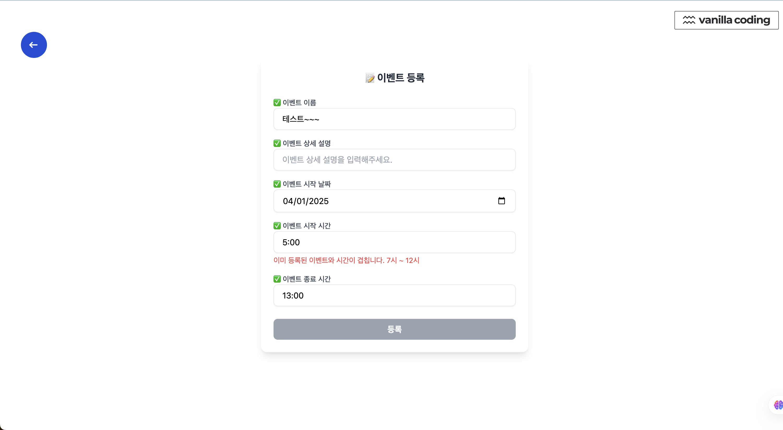- 이미 등록된 이벤트와 시간이 겹치는 경우
