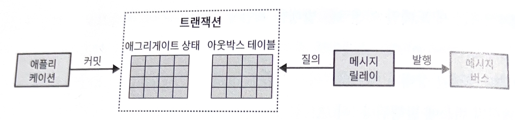 관계형 데이터베이스를 사용할 때 그림 9-12와 같이 두 개의 테이블에 원자적으로 커밋하고, 메시지를 저장하기 위한 전용 테이블을 사용하는 데이터베이스 기능을 활용하는 것이 좋다.