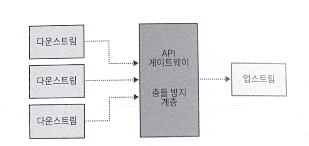 API 게이트웨이를 사용하여 구현된 충돌 방지 계층은 여러 다운스트림 바운디드 컨텍스트에서 사용할 수 있다.