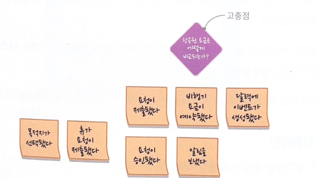 일단 시간 순서대로 이벤트를 구성했으면 전체 구성을 보고 프로세스에서 주목할 만한 포인트를 식별한다.