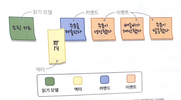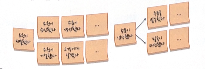 탐색하려는 비즈니스 도메인에 관련된 도메인 이벤트(domain event)를 브레인스토밍하는 것부터 시작된다.