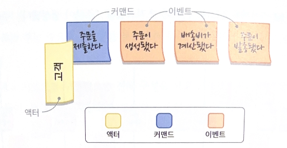 커맨드는 파란색 포스트잇에 작성해서 커맨드가 생성하는 이벤트 앞에 붙인다.