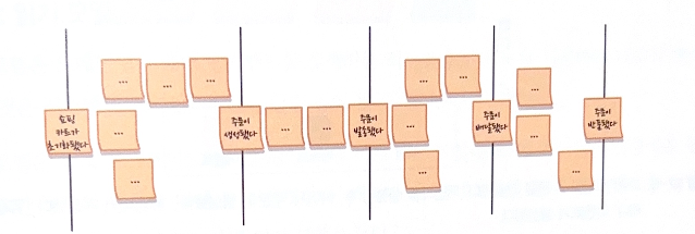 참가자는 포스트잇을 활용하여 일련의 도메인 이벤트를 시간의 흐름에 따라 표현한다.