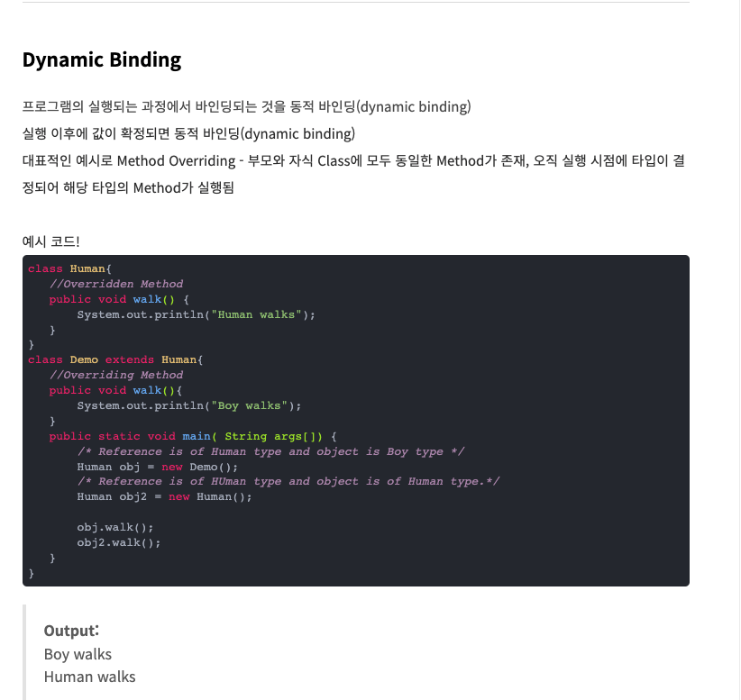 - 동적바인딩(Dynamic Binding)