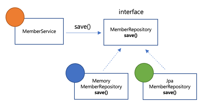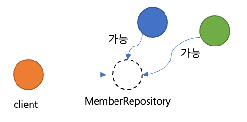- 구현 객체를 변경하려면 클라이언트(MemberService) 코드를 변경해야 한다.