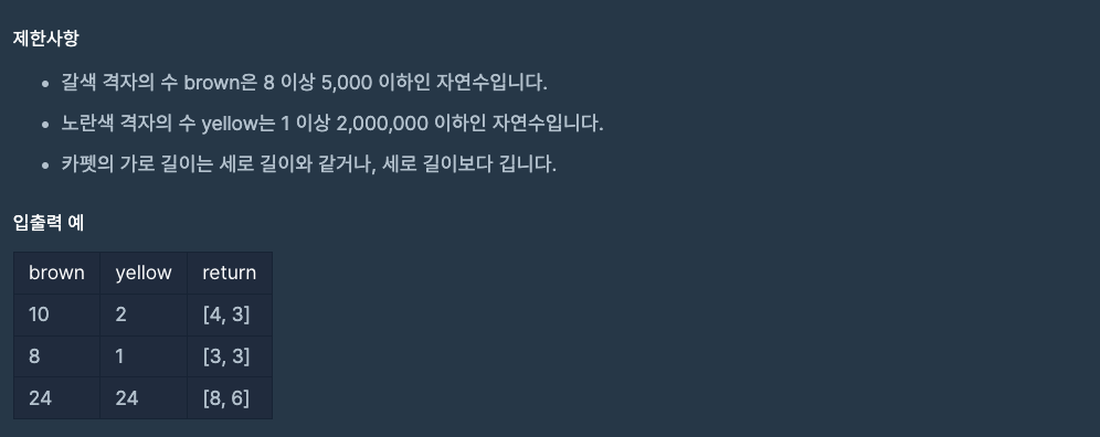 // 1. (w,h) = (brown) + (yellow) 의 약수